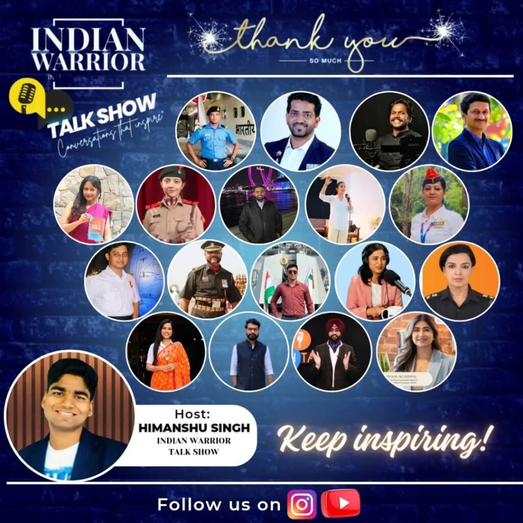 Gratitude post ๐๐ Our Indian Warrior Talk Show journey began just 50 days ago, and we’ve already completed 20 EPISODES! ๐บ๐ We’re honored to have shared the stories of inspiring personalities from diverse backgrounds, including: ๐ฎ Ex-Army Officers ๐ฃโโ๏ธ Navy Officers ๐ IAS Officers ๐ช Motivational Speakers ๐ Authors ๐ง Psychologists And many more! ๐ค Our Indian Warrior Team extends heartfelt gratitude ๐ to each of our esteemed guests and everyone who has supported us on this journey. We’re committed to continuing our mission of inspiring and motivating you with real-life stories of courage, resilience, and determination ๐ช. Stay tuned for more exciting episodes and inspiring stories! ๐บ๐ Check out Previous Episodes on youtube ๐”Indian warrior talk show”